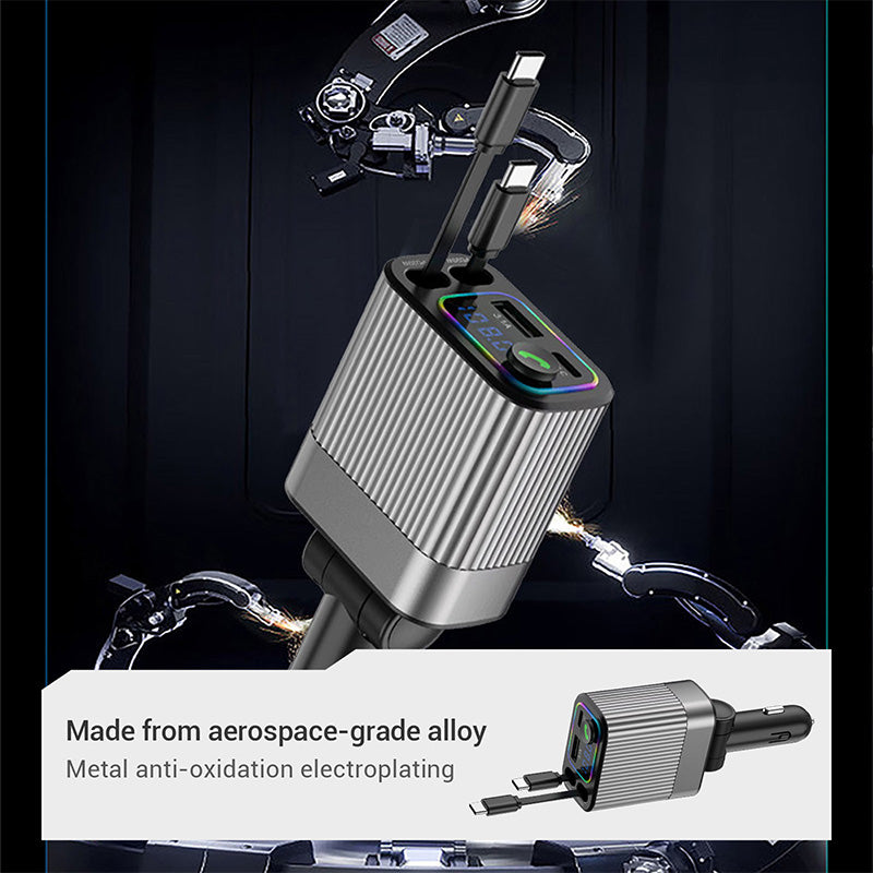 2-IN-1DESIGNĀ -Ā Combines a car charger and Bluetooth audio player in one compact unit, saving valuable space in your vehicle. The built-in LED display features ambient lighting, enhancing both usability and style. Itās the ideal companion for daily commutes and long road trips alike.