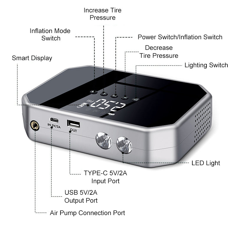 Product Functions: Jump Start / Inflation / Charging / Lighting