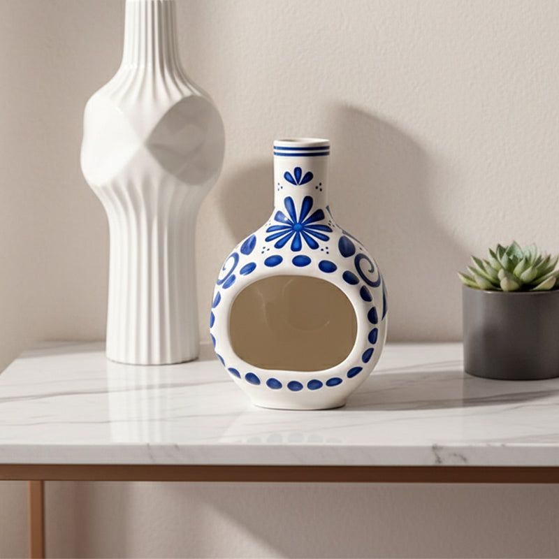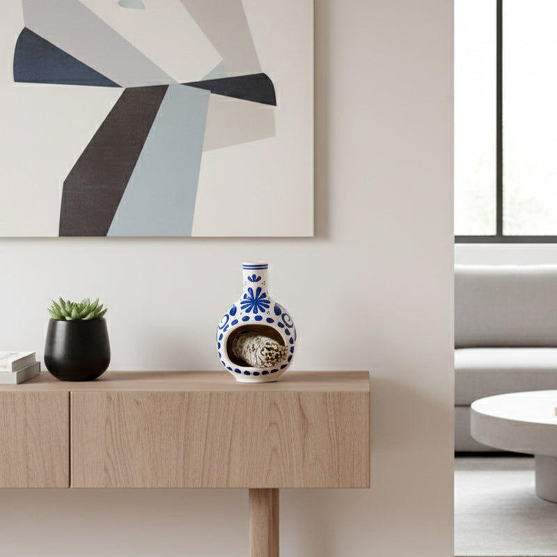 ELEGANT DECORATIVE ACCENTĀ - Featuring a timeless blue and white floral pattern, this burner serves as a stunning piece of home decor. It adds a touch of tranquility and sophistication to any meditation room or living area.