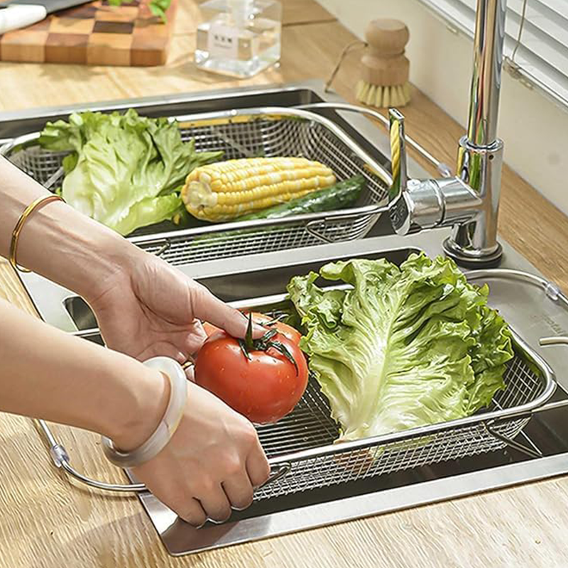MULTI-FUNCTIONAL DRAINING & STORAGE: Fine perforated mesh allows rapid water drainage while securely holding small items like chopsticks, cutlery, or delicate produce. Doubles as a storage tray for fruits, vegetables, or dishes, enabling versatile use beyond basic draining tasks.