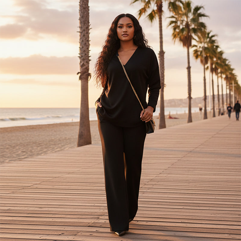 V-NECK TOP DESIGN: The elegant V-neck of the top offers a flattering silhouette, suitable for various body types, and can be easily accessorized for different occasions.